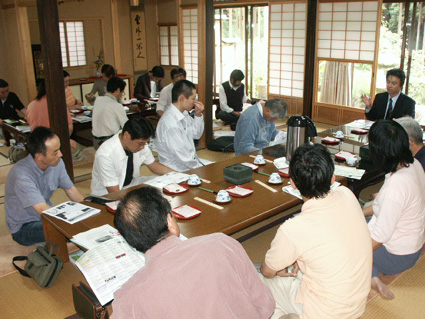 京都水琴窟ネット-KYOTO会長の大橋智夫 氏から、京都市鳴滝の西寿寺で水琴窟の構造と歴史について教授いただいた。西寿寺は、大橋氏が手掛けられた水琴窟の中でも自然界の音の中で「ポーン・カーン」の音色を聞くことができる最も良いスポットとのこと。水琴窟の歴史などを聞きながらの山寺でのゆっくりとした時間を過ごすことができ、日々の雑踏を忘れてしまいました。