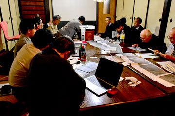 カッパ研究会視覚資料研究会では、鈴木京都産業大学教授を中心に、江戸時代中期頃に書かれた川方勤書とその裏面の賀茂川絵図について調査研究を進め、山崎達雄さんに古文書を解読していただくなど、皆さんのご協力でようやくまとまり、第67回のカッパ研究会の「京の水文化を語る座談会」にてお披露目をすることになりました。